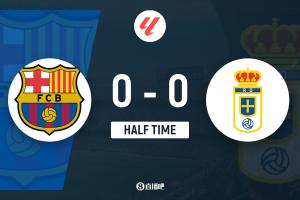 上半場比賽結(jié)束,巴塞羅那0-0皇家奧維耶多。