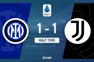 上半場傷停補時2分鐘,半場結束,國際米蘭暫1-1尤文圖斯。