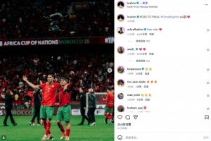 皇馬中場布拉欣·迪亞斯在本場比賽首發(fā)出戰(zhàn),他也在賽后通過社媒曬出和隊(duì)長阿什拉夫的合照,并配文:“晉級決賽!”