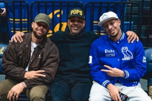 體育資訊1月15日訊 杜克大學(xué)官方社媒更新,曬出了庫(kù)里父子三人在場(chǎng)邊看球的合照。