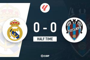 上半場(chǎng)補(bǔ)時(shí)2分鐘,皇馬0-0萊萬(wàn)特。