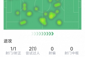 體育資訊1月17日訊 在本輪英超曼市德比,曼聯(lián)2-0擊敗曼城,梅努迎來本賽季首次英超首發(fā),以下為他在本場(chǎng)數(shù)據(jù):