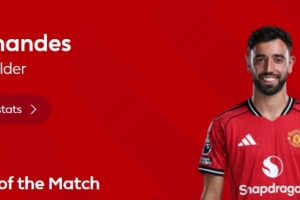 送出助攻,英超官方:B費(fèi)當(dāng)選曼聯(lián)2-0曼城全場(chǎng)最佳球員