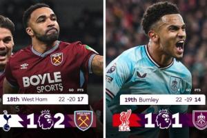 西漢姆(第18)2-1絕殺熱刺,取得3分