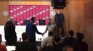 41歲的切爾西新帥羅塞尼爾首場賽前發(fā)布會(huì),與場下的記者一一握手