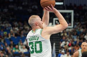 此役,豪澤出戰(zhàn)30分鐘,21投10中,全部都是三分,也沒有罰球,砍下30分6籃板3助攻1搶斷1蓋帽。