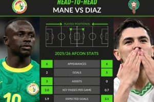 體育資訊1月19日訊 塞內(nèi)加爾將在本屆非洲杯決賽挑戰(zhàn)東道主摩洛哥,whoscored也對比了雙方明星球員本屆賽事關(guān)鍵數(shù)據(jù)。