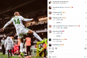 馬倫也在賽后通過社媒曬出自己的慶祝照,并配文:“首秀、進球、勝利!”